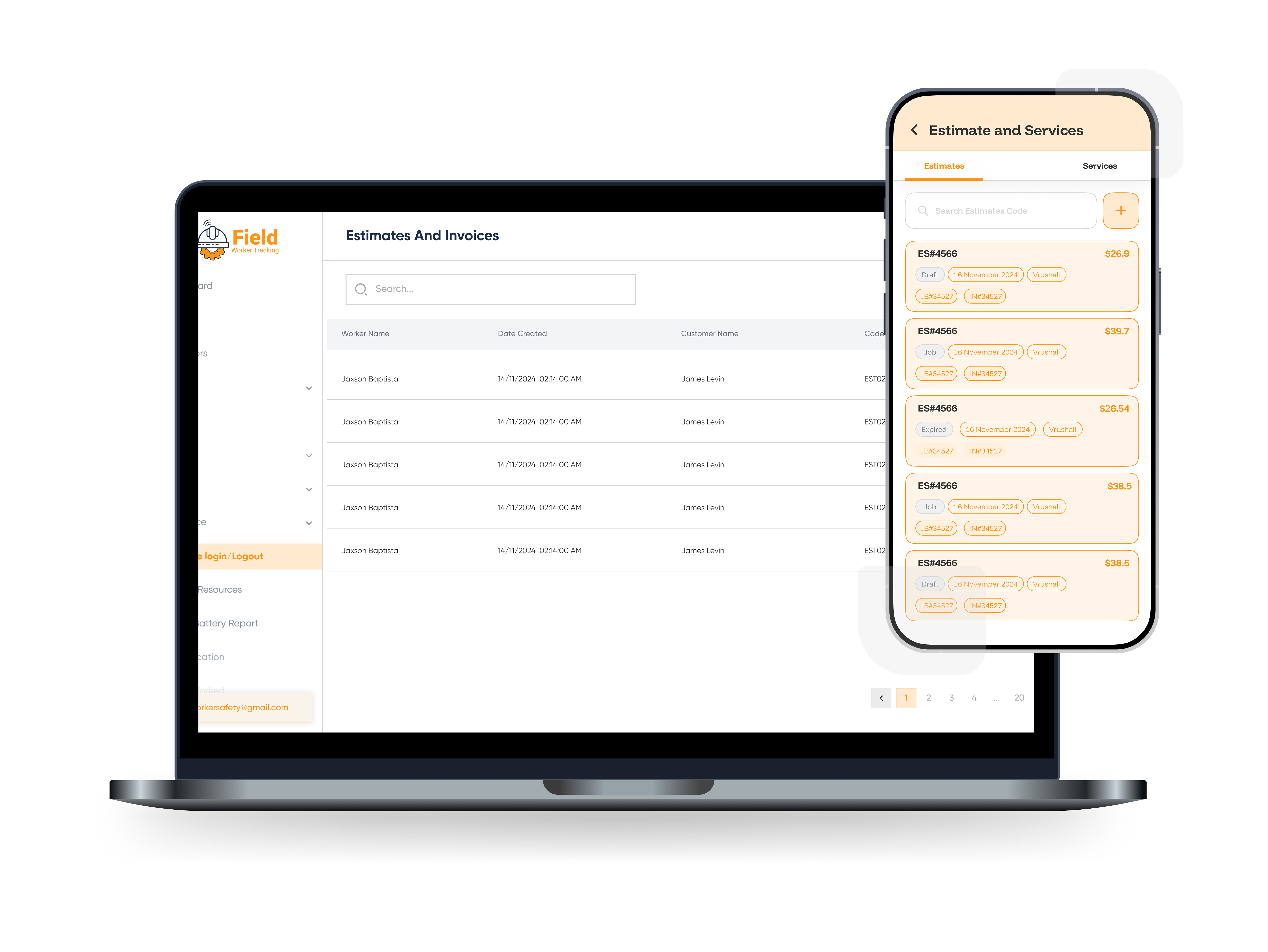 Now you can create quotes and estimates right from your mobile phone or tablet. You can email the estimate to your customer immediately, complete with your company's logo. With 1-click, an estimate can be turned into a work order. With 1 more click, that work order can be turned into an invoice. Simple work-flows allow your team to focus on the job at-hand, not complicated software. When a job is completed or scope of work changed, customers can sign their consent for invoices and additional charges with their finger onto a mobile worker's phone or tablet. Invoices can now be completed right away while the details about the job are fresh in the mobile worker's mind. Customers now know exactly what they're agreeing to pay for, and you have their signature confirming their acknowledgement of such. Invoices integrate into popular Accounting software platforms like QuickBooks. (In Beta.)